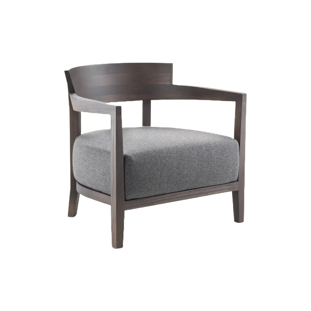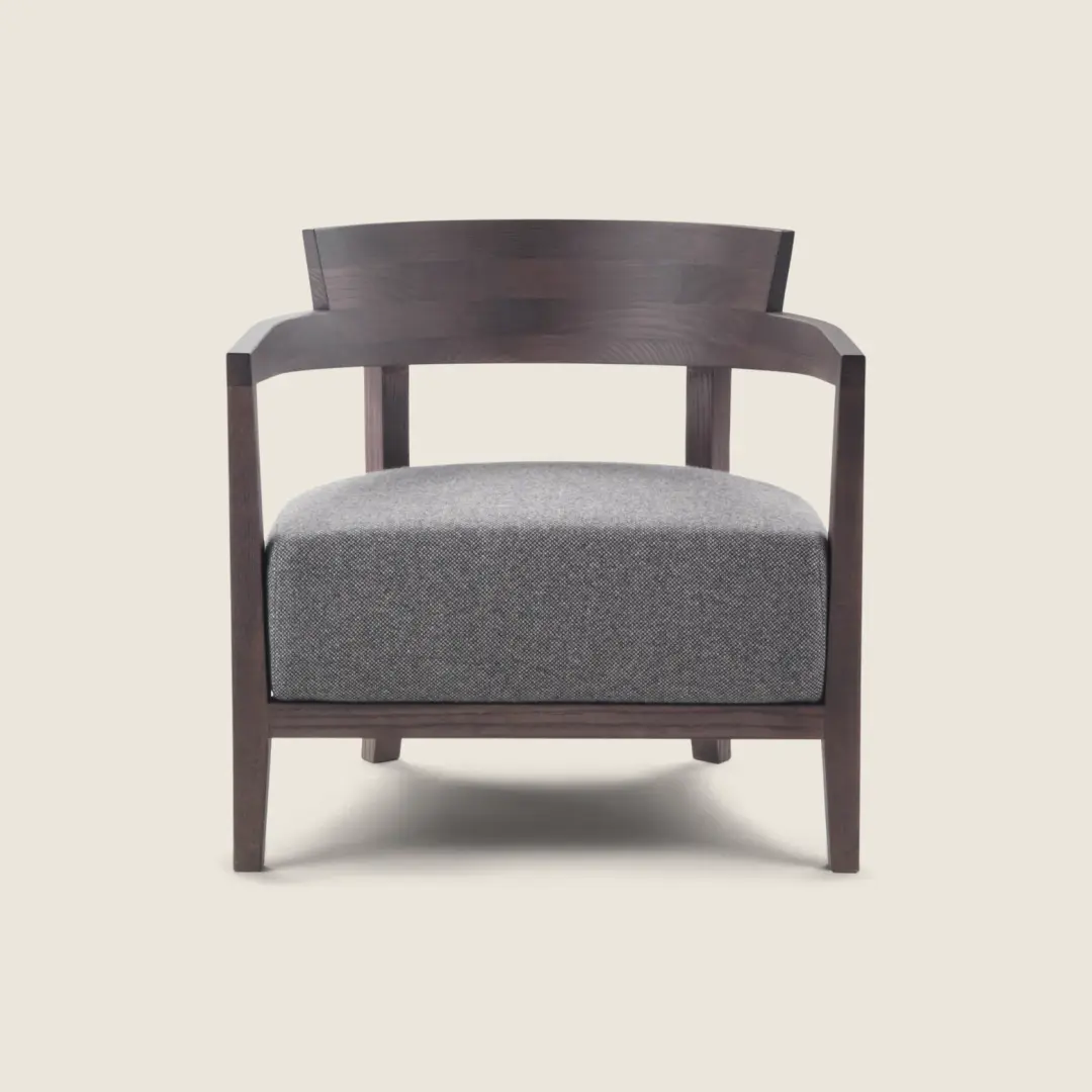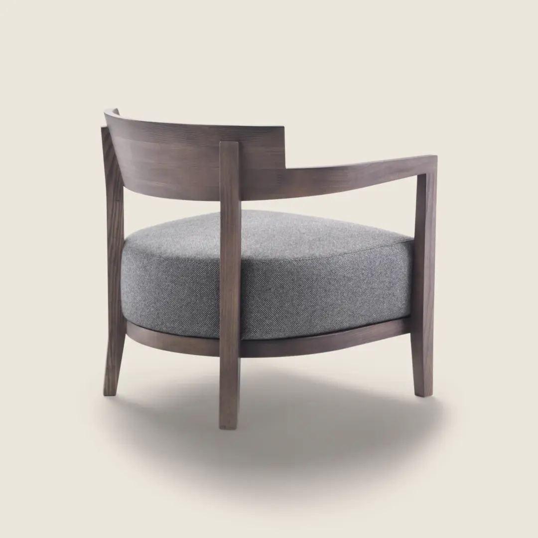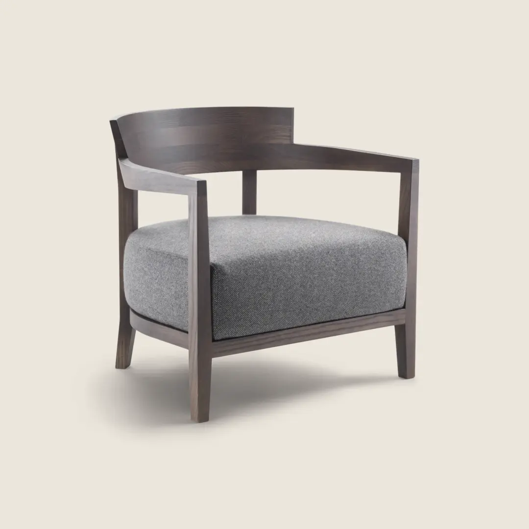 An armchair with classic-contemporary lines, Jenny’s timeless aesthetic transcends the bounds of changing seasons and fading fashions. The armchair is made of solid wood, stained in a wide array of sophisticated colors. The curved contours of the seat back highlight the armchair’s cozy yet discreet personality. The balanced proportions and aesthetic elegance expressed by the Jenny armchair allow it to fit seamlessly in residential settings as well as hospitality spaces, like lounges, lobbies and waiting rooms.