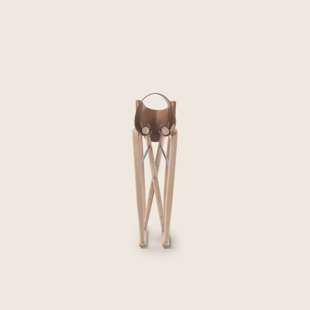 Folding structure in solid Canaletto walnut with raw-wood effect, natural, or stained walnut extra finish; or in solid ash with natural finish or stained walnut, stained teak, stained wenge, stained brown or stained ebony; or in solid oak with raw-wood effect finish. Metal screws and connectors in chrome, burnished or matt titanium 710 finish. Joints in die-cast zama in chrome, burnished or matt titanium 710 finish
