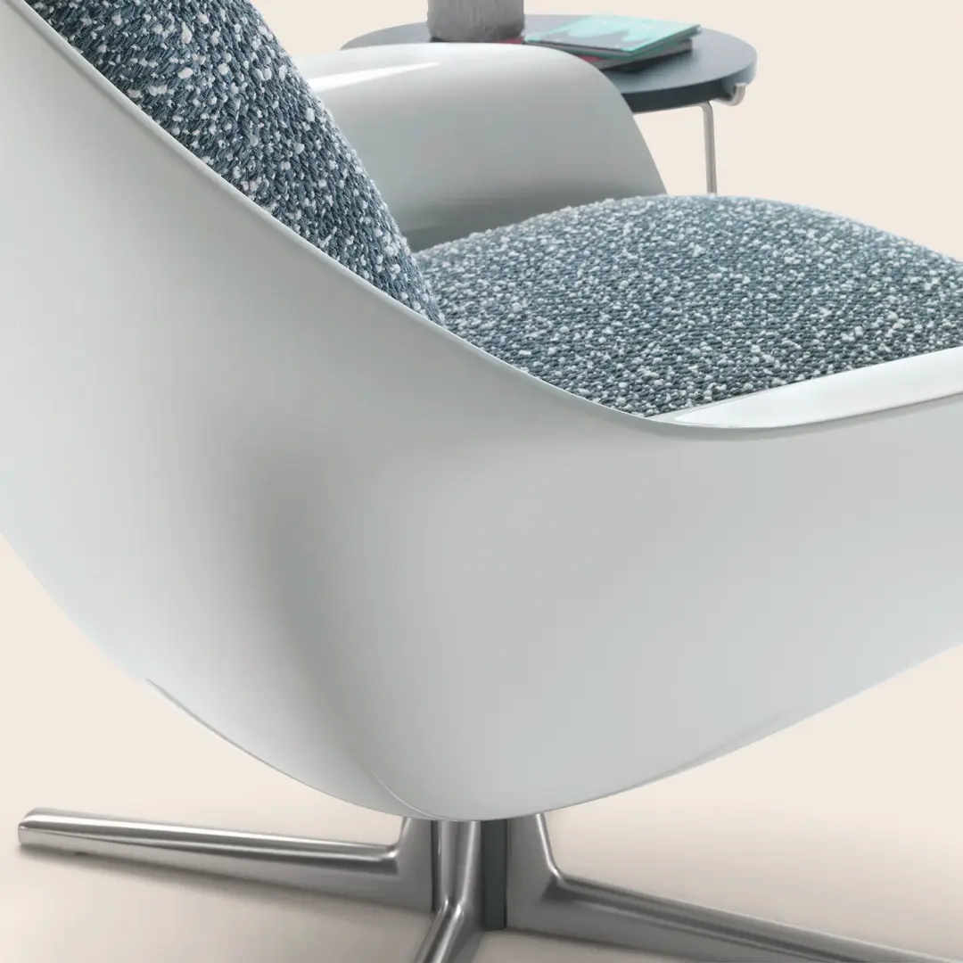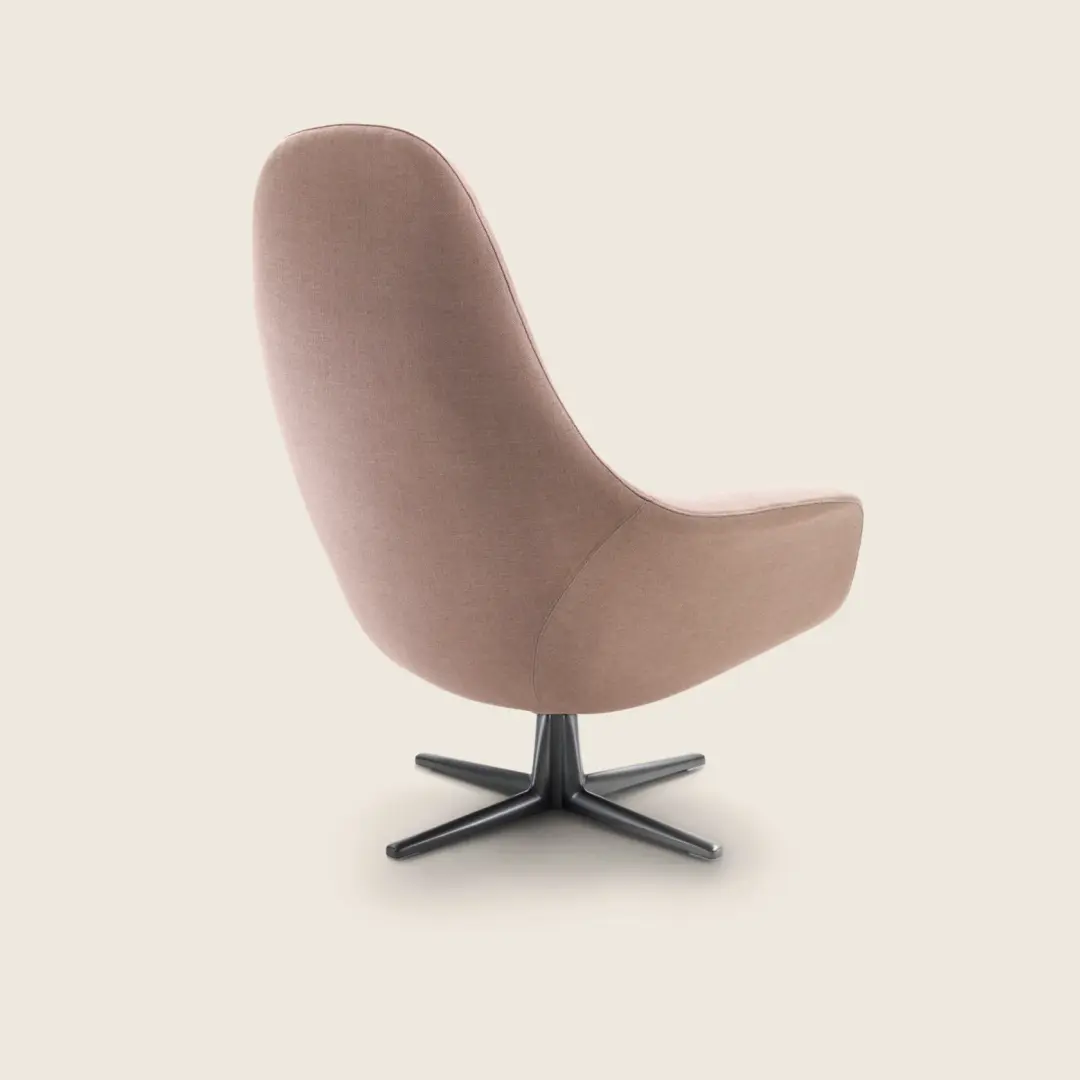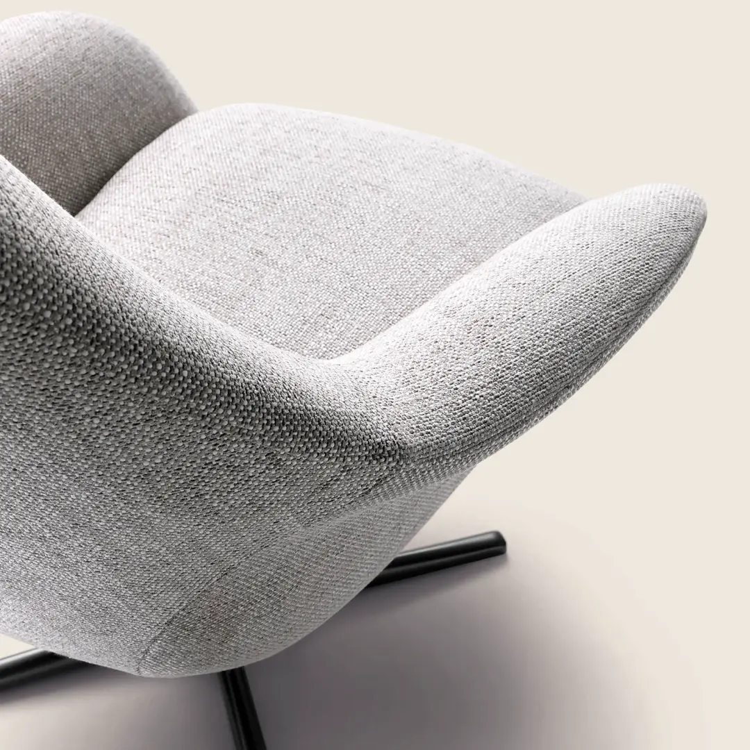 Features Swivel base 4/5 spokes with 360-degree swivel; in cast aluminium with satin, chrome, black chrome, burnished, matt titanium 710 or glossy anthracite finish; the ottoman has a stationary base with 4 spokes. Feet rest on tips made of thermoplastic material |
