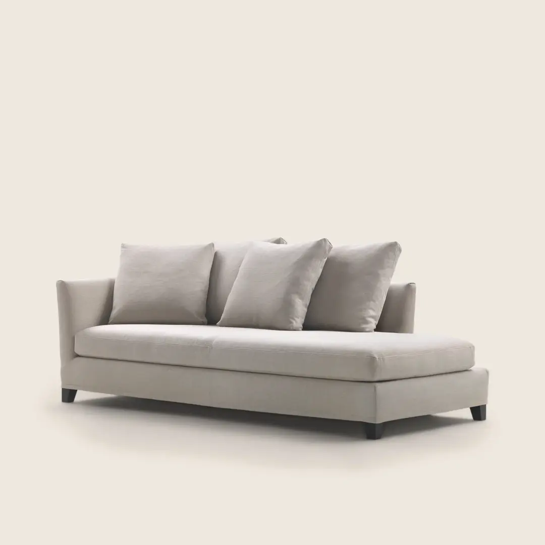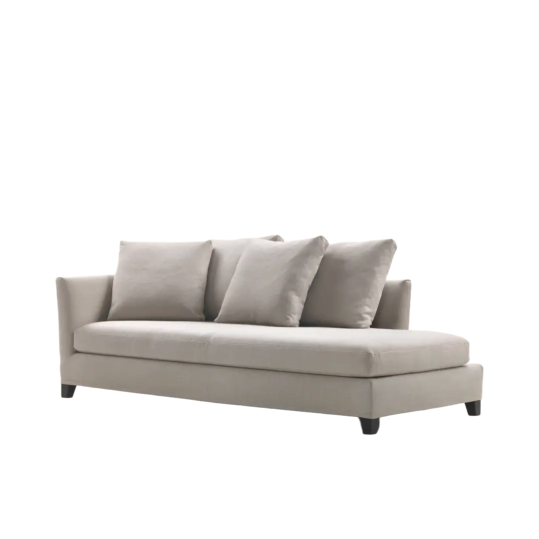 The Victor daybed reflects the same restrained elegance expressed by its namesake sofa. The wood structure is padded with polyurethane foam covered in a laminated fabric. The seat back and armrest are at the same height and gently envelop the single seat cushion that is generously padded with polyurethane and Dacron.